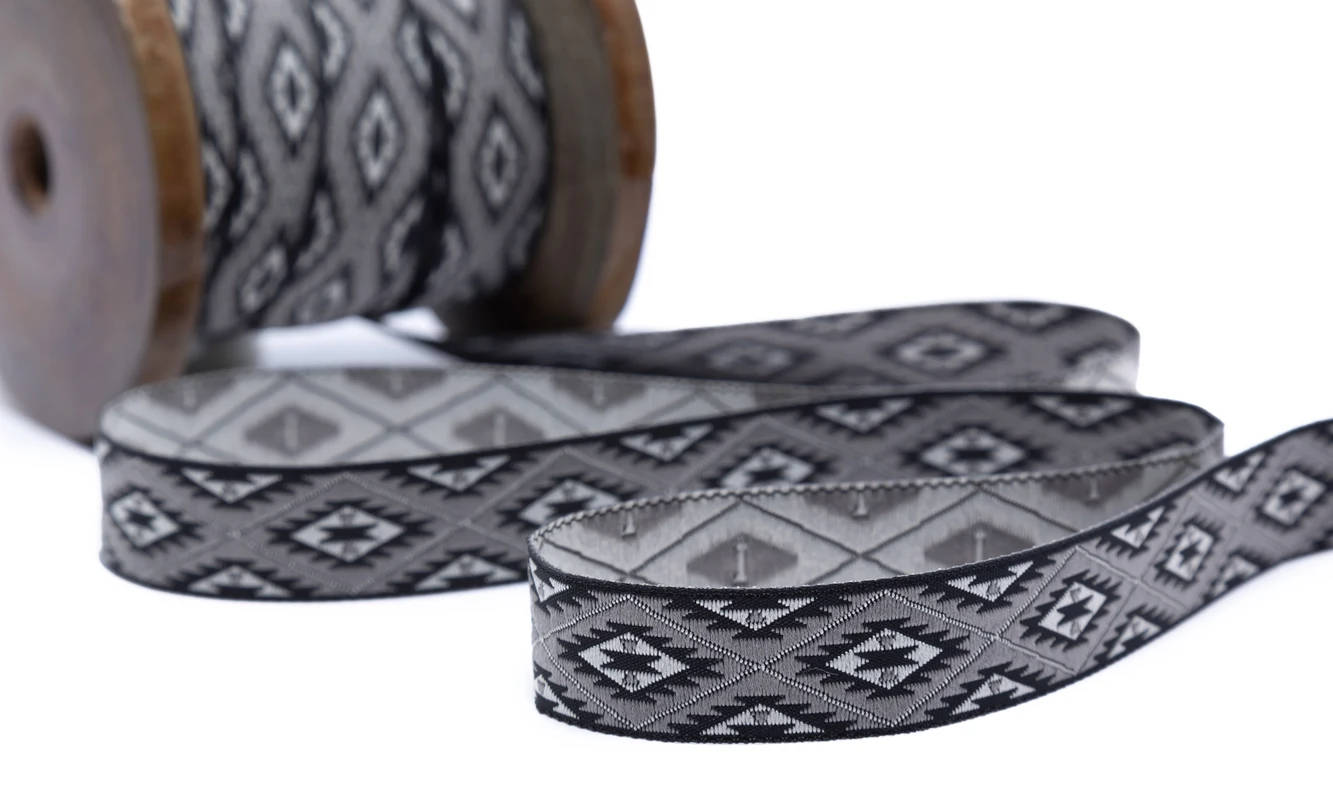 Tolles Webband, weich im Griff und toll zu verarbeiten. Perfekt als Nahtabdeckung, für Schlüsselbänder, oder Aufnäher. Mit diesem coolen Ethno Retro Look lässt sich fantastisch kombinieren.Einsatz als: