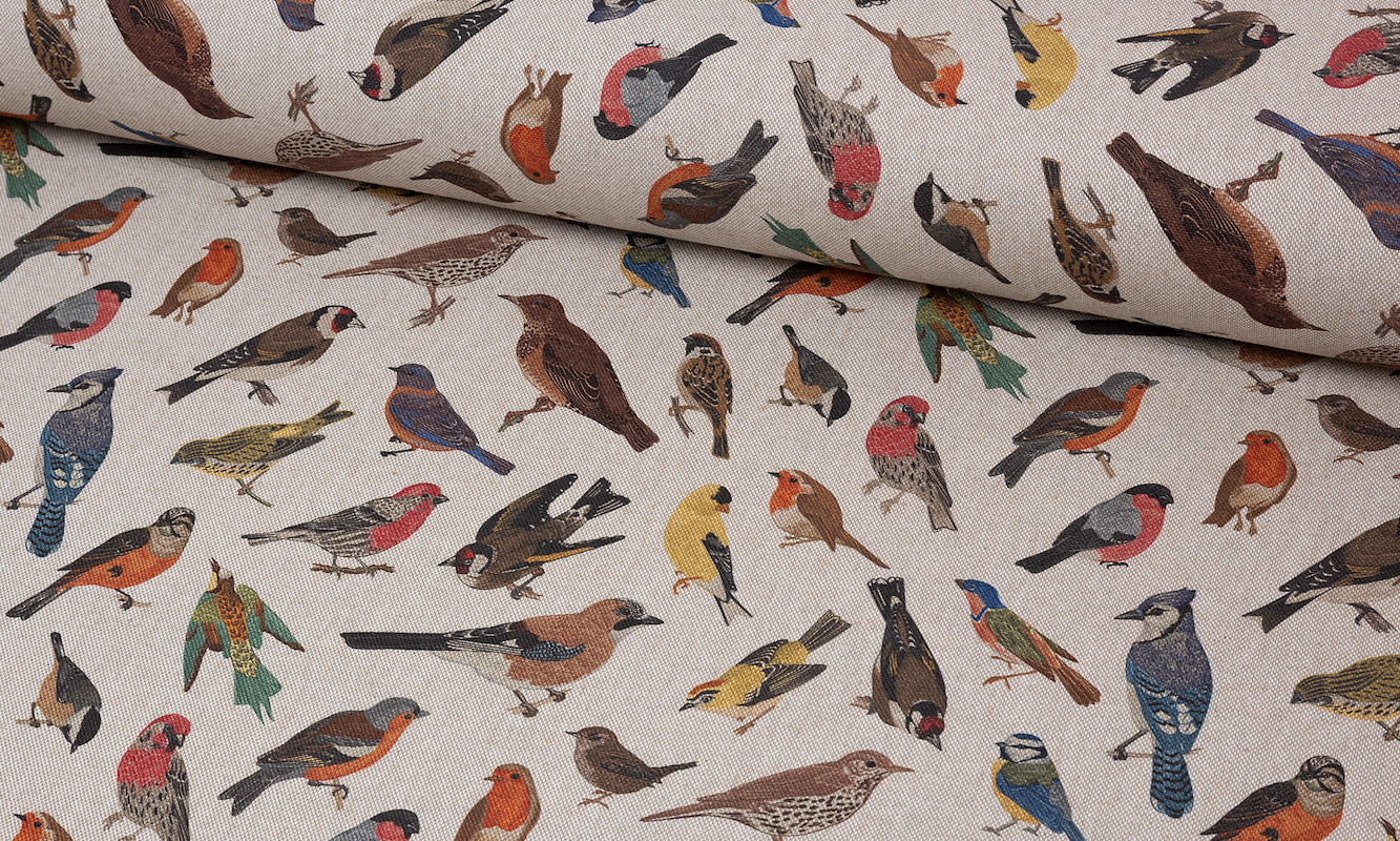 Manchmal reicht ein Blick auf einen Stoff und schon beginnt die Fantasie zu arbeiten. Die vielen detailreichen Vogelillustrationen wirken lebendig, charmant und wunderbar verspielt. Jeder Blick entdeckt neue kleine Motive und genau das macht diesen Stoff so besonders. Er verleiht deinen Nähprojekten sofort Persönlichkeit und eine frische, kreative Ausstrahlung.Der robuste Canvas überzeugt mit einer angenehm natürlichen Leinenoptik und einer stabilen, strapazierfähigen Qualität. Durch die Kombination aus Baumwolle und recycelten Fasern entsteht ein langlebiger Stoff, der Alltagstauglichkeit mit einem modernen und nachhaltigen Ansatz verbindet. Die Oberfläche wirkt angenehm griffig und formstabil, sodass Projekte ihre schöne Form behalten. Gleichzeitig bleibt der Stoff vielseitig einsetzbar und lässt sich wunderbar mit Uni Stoffen, Naturtönen oder kräftigen Farben kombinieren. Das detailreiche Vogelmotiv sorgt für einen lebendigen Look, der sofort ins Auge fällt und gleichzeitig zeitlos wirkt.