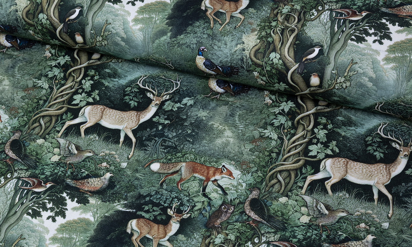 Mit diesem Canvas zieht pure Waldmagie in deine Nähideen ein. Dieses ausdrucksstarke Design vereint Rehe, Fuchs, Eulen und Vögel mit einer geheimnisvollen Waldkulisse und schafft damit einen Look, der sofort fesselt. Der Stoff wirkt lebendig, detailreich und wunderbar besonders. Genau richtig für Projekte, die nicht einfach nur schön aussehen sollen, sondern echte Stimmung transportieren. Natürlich, trendig und mit einer guten Portion Abenteuerflair bringt dieser Canvas frischen Charakter auf deinen Nähtisch.Der robuste Panama Canvas aus 100 Prozent Baumwolle überzeugt mit einer strapazierfähigen und langlebigen Qualität. Durch seine feste Struktur ist er ideal für Nähideen, die Form, Stabilität und Alltagstauglichkeit brauchen. Das kunstvolle Waldmotiv sorgt für eine starke optische Wirkung und macht jedes Projekt zu einem echten Hingucker. Gleichzeitig wirkt die dunkle grüne Farbwelt harmonisch, edel und naturnah. So verbindet dieser Stoff ausdrucksvolles Design mit vielseitigem Nutzen. Besonders schön ist auch, dass der Canvas nachhaltig begeistert und dank Oeko Tex Standard 100 Product Class I ein gutes Gefühl beim Verarbeiten mitbringt.