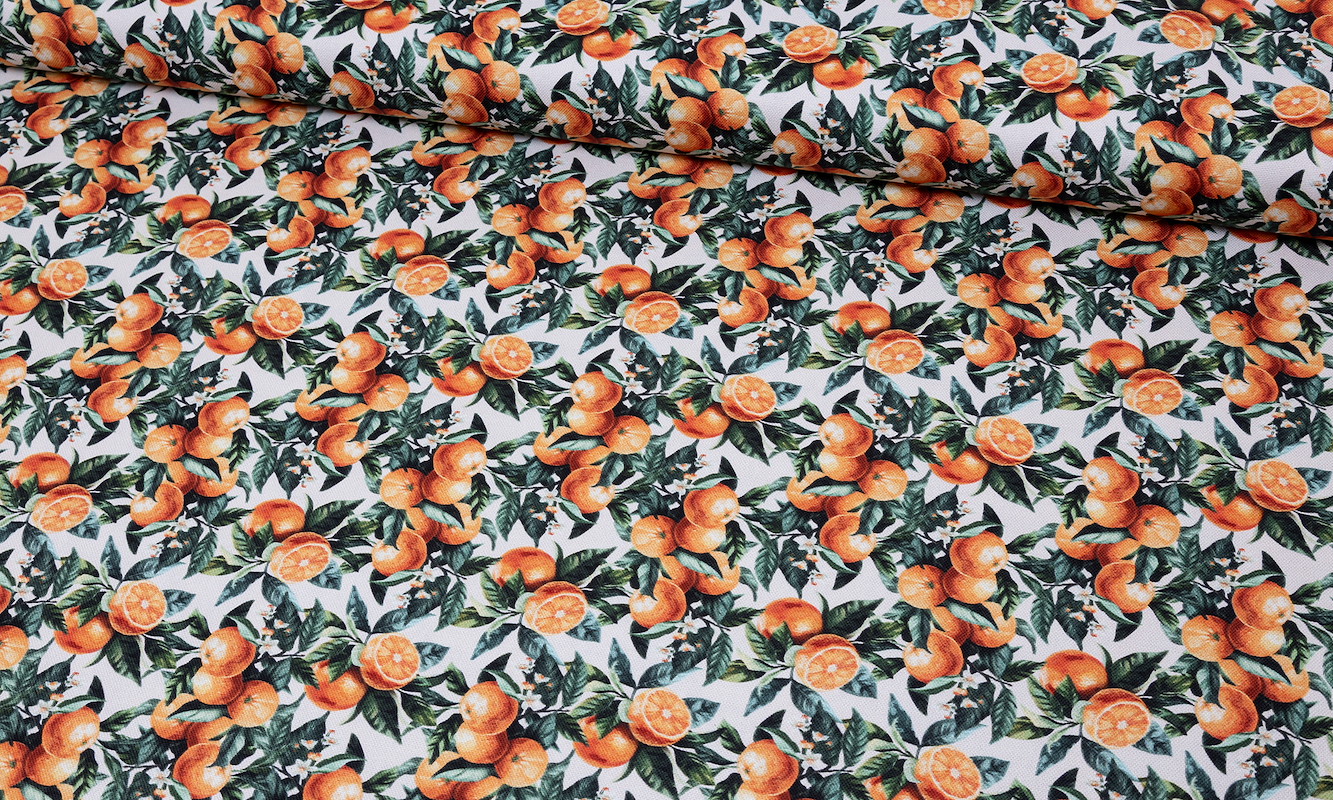 Der Stoff lässt sich angenehm verarbeiten und eignet sich ideal für stabile Nähprojekte. Für ein sauberes Ergebnis empfiehlt sich eine etwas stärkere Nadel sowie eine längere Stichlänge. Beim Zuschneiden lohnt es sich, das Muster bewusst zu platzieren, damit die fruchtigen Details optimal zur Geltung kommen.Starte dein nächstes Sommerprojekt und bring frische Energie in deine Ideen