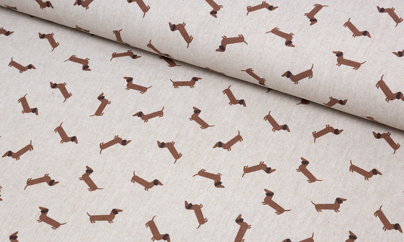 Dieser Canvas mit kleinen Dackelmotiven bringt sofort gute Laune auf deinen Nähtisch. Die natürliche Stofffarbe und das liebevolle Hundedesign verleihen jedem Projekt eine charmante, fröhliche Note. Ideal für alle, die natürliche Materialien mit einem Augenzwinkern lieben.Die hochwertige Materialmischung aus 80% Baumwolle und 20% Polyester sorgt für angenehme Stabilität, Strapazierfähigkeit und eine feine Struktur. Der Stoff ist robust, langlebig und dabei angenehm weich – perfekt geeignet für kreative Ideen, die sowohl praktisch als auch dekorativ sein sollen.