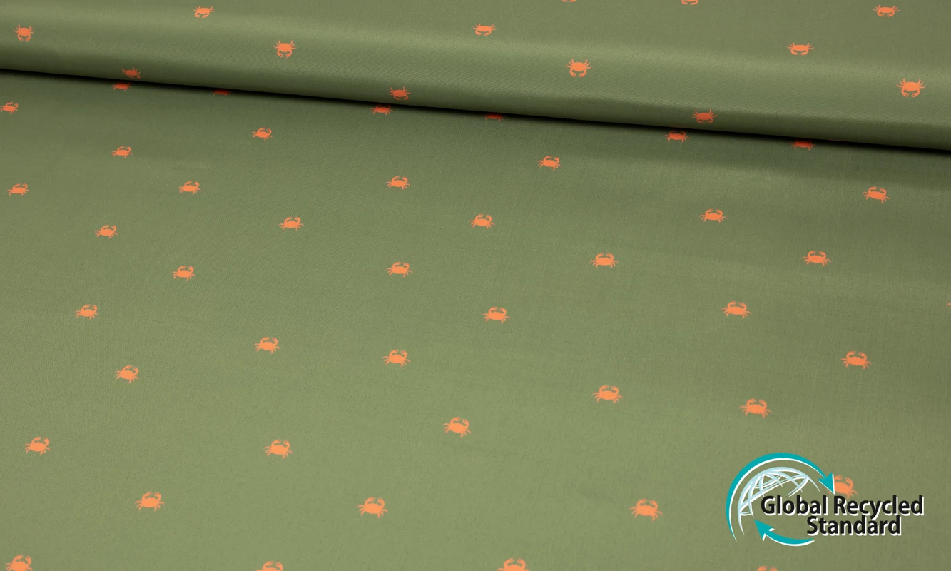 Maritimer Badestoff Krabben Olive für Badeshorts und Sportswear