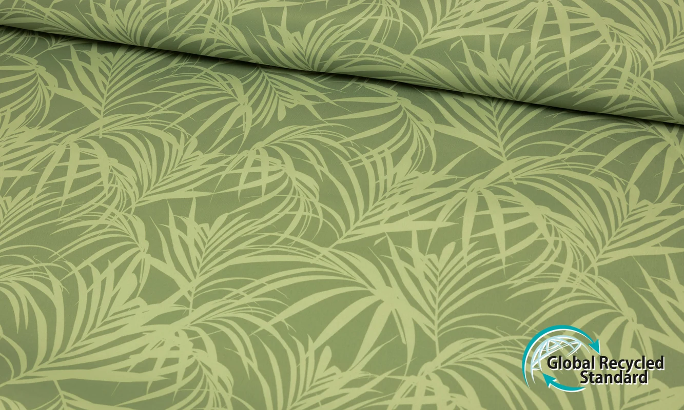 Mit dem Badeanzugstoff Palmen Olive holst du dir tropisches Urlaubsfeeling direkt an deine Nähmaschine. Das Ton in Ton Blätter Design erinnert an Palmen im warmen Abendlicht und macht deine Projekte im Nu strandtauglich und modern.Der Badestoff besteht aus 100 Prozent recyceltem Polyester und ist wasserabweisend sowie schnell trocknend. Die glatte, angenehm kühle Oberfläche liegt leicht auf der Haut und sorgt auch an heissen Tagen für ein komfortables Tragegefühl. Der hochwertige Digitaldruck lässt das Palmenmotiv klar und ruhig erscheinen und bleibt auch nach vielen Waschgängen schön. Da der Stoff nicht elastisch ist, behält er seine Form besonders gut und gibt deinen Schnitten einen klaren, strukturierten Fall. Mit 145 cm Stoffbreite hast du genug Spielraum für grössere Schnittteile. Dank GRS Global Recycled Standard und Oeko Tex Standard 100 Produktklasse I überzeugt der Stoff zusätzlich in Sachen Nachhaltigkeit und Hautverträglichkeit und lässt sich wunderbar mit Badelycra und anderen Sportswear Qualitäten kombinieren.