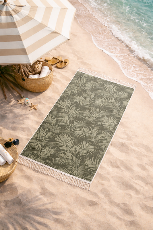 Ein Stoff, der sofort nach Sonne, Wärme und entspannten Momenten aussieht. Die grossflächigen Blätter bringen ein ruhiges, natürliches Muster mit und verleihen deinen Projekten einen modernen, lässigen Look. Perfekt für alle, die es stilvoll und gleichzeitig unkompliziert mögen.Der Badetuchstoff überzeugt mit seiner weichen, saugfähigen Oberfläche und sorgt für ein angenehmes Gefühl auf der Haut. Gleichzeitig ist er robust genug für den täglichen Einsatz am Wasser, im Garten oder unterwegs. Das Design wirkt klar und zeitlos und lässt sich vielseitig kombinieren.