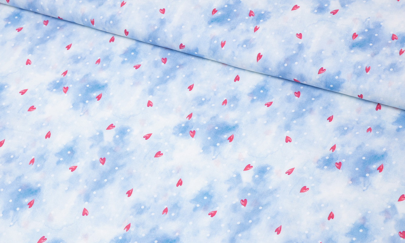 Dieser Viskose Stoff bringt eine sanfte, fast schwebende Stimmung in deine Nähprojekte. Der zarte Hintergrund wirkt wie leicht verwischte Aquarellwolken und wird von kleinen Herzchen durchzogen, die dem Design eine liebevolle, verspielte Note verleihen. Das Gesamtbild wirkt ruhig, modern und gleichzeitig emotional.Durch den fliessenden Fall entsteht eine natürliche Bewegung im Stoff, die jedes Kleidungsstück lebendig wirken lässt. Die feine Optik sorgt dafür, dass deine Projekte leicht und unbeschwert erscheinen, ohne an Ausdruck zu verlieren. Ein Stoff, der subtil auffällt und dabei eine ganz besondere Atmosphäre schafft.