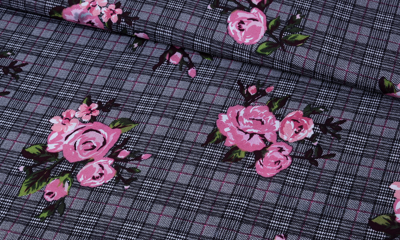 Dieser Viskose Stoff verbindet zwei starke Stilwelten zu einem einzigartigen Look. Klassisches Karo trifft auf ausdrucksstarke Rosen und schafft eine spannende Mischung aus modernem Chic und romantischer Leichtigkeit. Genau diese Kombination macht den Stoff zu einem echten Hingucker.Der weich fliessende Fall sorgt für eine wunderschöne Bewegung und lässt deine Nähprojekte lebendig wirken. Die floralen Elemente setzen gezielte Akzente, während das Karo dem Design Struktur und Tiefe verleiht. So entsteht ein harmonisches Gesamtbild mit modischer Aussagekraft.