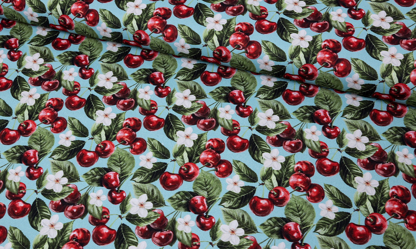 Mit Sweet Cherry Splash zieht sofort Sommerfeeling auf deinen Nähtisch ein. Die leuchtenden Kirschen, zarten Blüten und satten Blätter auf dem frischen Hellblau wirken lebendig, verspielt und herrlich modern. Dieses Design bringt genau die richtige Mischung aus guter Laune, Retro Charme und fruchtiger Frische in deine Nähideen. Ein Stoff, der auffällt, inspiriert und jedes Projekt im Nu mit einem sonnigen Statement Look veredelt.Das detailreiche Muster begeistert mit seiner ausdrucksstarken Optik und einer wunderbar harmonischen Farbwelt. Die kräftigen Kirschtöne wirken frisch und dynamisch, während die hellen Blüten dem Design eine leichte und charmante Note verleihen. Dadurch entsteht ein Look, der gleichzeitig verspielt, trendig und stilvoll wirkt. Sweet Cherry Splash ist perfekt für Projekte, die nicht nur praktisch sein sollen, sondern auch echte Lieblingsstücke mit Charakter werden dürfen. Der Stoff lässt sich wunderschön mit Uni Stoffen in Rot, Weiss, Gruen, Natur oder Hellblau kombinieren und sorgt immer für einen frischen, kreativen Auftritt.
